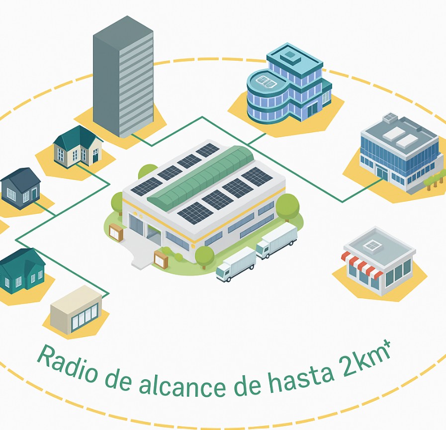 La energía generada se distribuye a las empresas situadas en un radio máximo de 2 kilómetros, siguiendo la normativa vigente de autoconsumo compartido (RD 244/2019).